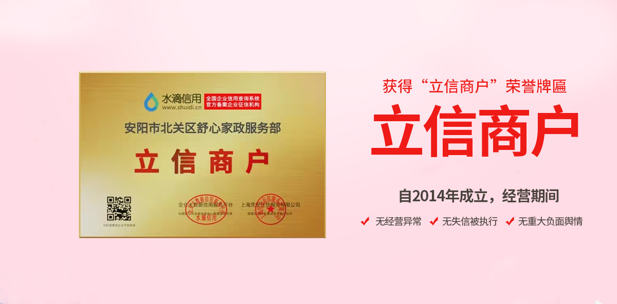 安陽市北關區(qū)舒心家政服務部立于2014年 是經(jīng)工商管理部門注冊,具有母嬰護理服務機構 所有上崗人員均通過崗位技能培訓嚴格考核,持有身份證 健康證 母嬰護理師證并且在公安部門備案方可上崗。安陽市北關區(qū)舒心家政服務部針對產(chǎn)婦和新生兒的特殊護理要求制訂一整套的護理方法 在現(xiàn)代科學理念的指導下通過對產(chǎn)婦的飲<了解更多>